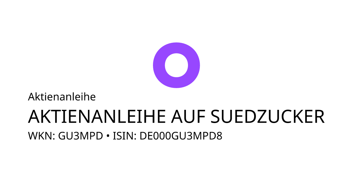 Diese Aktienanleihe bezieht sich auf den Basiswert Südzucker AG und hat den Fälligkeitstag am 25.03.2026. Das Produkt ist mit einem Kupon in Höhe von 5,00% p.a. ausgestattet und hat einen Nominalwert von 1.000 EUR. Am Ende der Laufzeit entscheidet die Wertentwicklung des Basiswerts über den Rückzahlungsbetrag. Notiert der Basiswert am Bewertungstag auf oder über dem Basispreis von 9,50 EUR, wird der Nominalbetrag ausbezahlt. Notiert der Basiswert unterhalb des Basispreises, erfolgt eine Lieferung von Anteilen des Basiswertes oder eines Referenzwertpapiers. Die Anzahl an Anteilen wird durch das Bezugsverhältnis von 105,2632 bestimmt, Bruchteile werden in der Regel in bar beglichen.