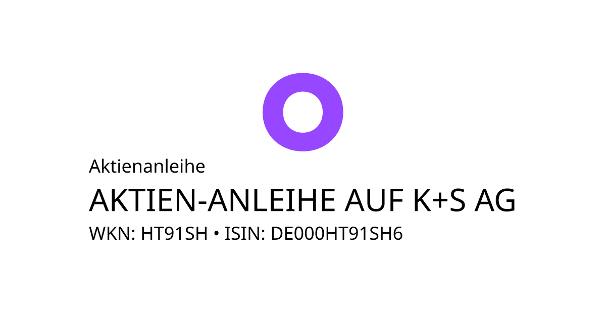 Diese Aktienanleihe bezieht sich auf den Basiswert K+S Aktiengesellschaft und hat den Fälligkeitstag am 23.10.2026. Das Produkt ist mit einem Kupon in Höhe von 13,00% p.a. ausgestattet und hat einen Nominalwert von 1.000 EUR. Am Ende der Laufzeit entscheidet die Wertentwicklung des Basiswerts über den Rückzahlungsbetrag. Notiert der Basiswert am Bewertungstag auf oder über dem Basispreis von 12,00 EUR, wird der Nominalbetrag ausbezahlt. Notiert der Basiswert unterhalb des Basispreises, erfolgt eine Lieferung von Anteilen des Basiswertes oder eines Referenzwertpapiers. Die Anzahl an Anteilen wird durch das Bezugsverhältnis von 83,3333 bestimmt, Bruchteile werden in der Regel in bar beglichen.