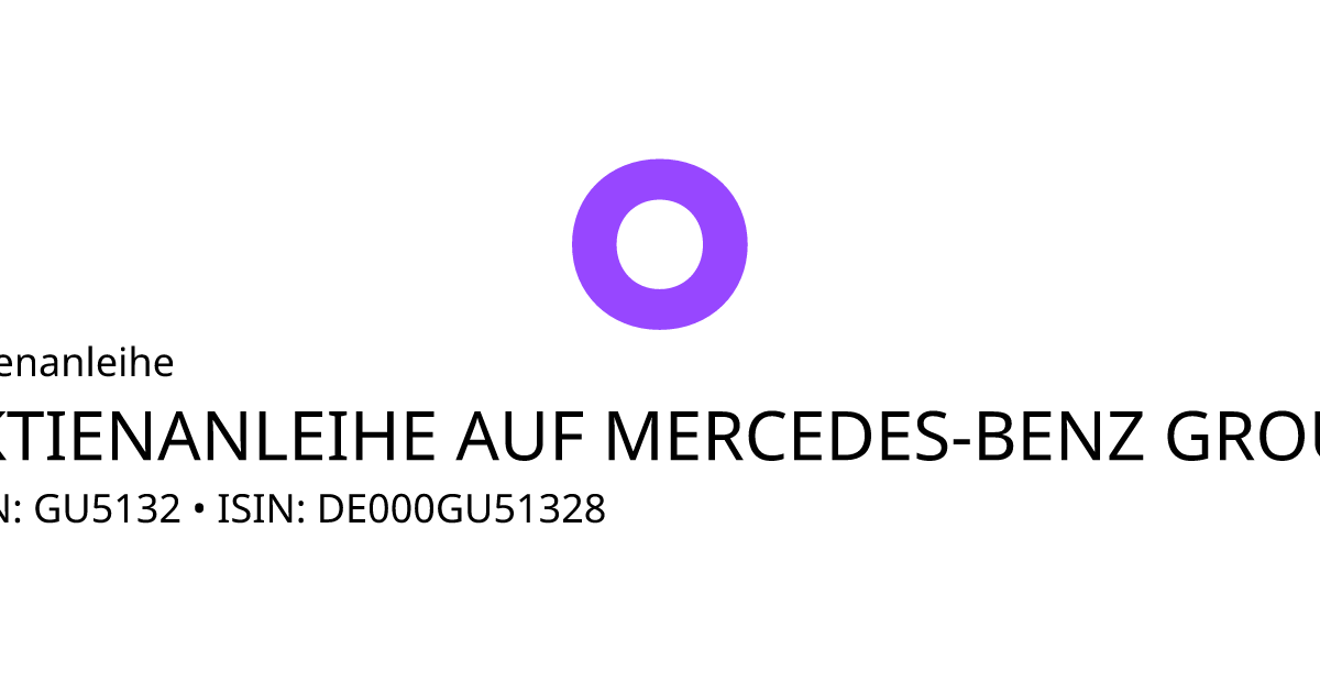 Diese Aktienanleihe bezieht sich auf den Basiswert Mercedes-Benz Group AG und hat den Fälligkeitstag am 24.12.2025. Das Produkt ist mit einem Kupon in Höhe von 4,00% p.a. ausgestattet und hat einen Nominalwert von 1.000 EUR. Am Ende der Laufzeit entscheidet die Wertentwicklung des Basiswerts über den Rückzahlungsbetrag. Notiert der Basiswert am Bewertungstag auf oder über dem Basispreis von 54,00 EUR, wird der Nominalbetrag ausbezahlt. Notiert der Basiswert unterhalb des Basispreises, erfolgt eine Lieferung von Anteilen des Basiswertes oder eines Referenzwertpapiers. Die Anzahl an Anteilen wird durch das Bezugsverhältnis von 18,51852 bestimmt, Bruchteile werden in der Regel in bar beglichen.