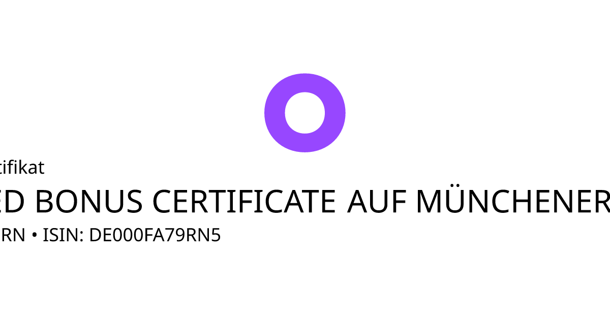 Dieses Capped-Bonus-Zertifikat bezieht sich auf den Basiswert Münchener Rückversicherungs-Gesellschaft AG in München und hat den Fälligkeitstag am 28.12.2026. Das Produkt ist mit einem Sicherheitslevel von 500,00 EUR und einem Cap von 700,00 EUR ausgestattet. Der Anleger partizipiert unter Berücksichtigung des Bezugsverhältnisses von 1,00 an der Entwicklung des Basiswertes, die Rückzahlung ist allerdings auf maximal 700,00 EUR begrenzt (Cap multipliziert mit dem Bezugsverhältnis). Notiert der Basiswert während des Beobachtungszeitraums vom 08.08.2025 bis zum 18.12.2026 nie auf oder unter dem Sicherheitslevel wird am Ende der Laufzeit mindestens der Bonusbetrag von 700,00 EUR und maximal der Höchstbetrag (in bar) ausbezahlt. Andernfalls erfolgt die Rückzahlung in Anteilen des Basiswertes oder eines Referenzwertpapiers.