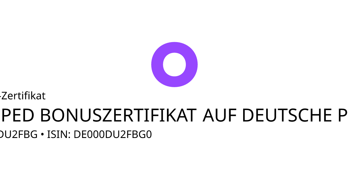 Dieses Capped-Bonus-Zertifikat bezieht sich auf den Basiswert Deutsche Post AG und hat den Fälligkeitstag am 24.09.2027. Das Produkt ist mit einem Sicherheitslevel von 35,00 EUR und einem Cap von 60,00 EUR ausgestattet. Der Anleger partizipiert unter Berücksichtigung des Bezugsverhältnisses von 1,00 an der Entwicklung des Basiswertes, die Rückzahlung ist allerdings auf maximal 60,00 EUR begrenzt (Cap multipliziert mit dem Bezugsverhältnis). Notiert der Basiswert während des Beobachtungszeitraums vom 14.08.2025 bis zum 17.09.2027 nie auf oder unter dem Sicherheitslevel wird am Ende der Laufzeit mindestens der Bonusbetrag von 60,00 EUR und maximal der Höchstbetrag ausbezahlt.