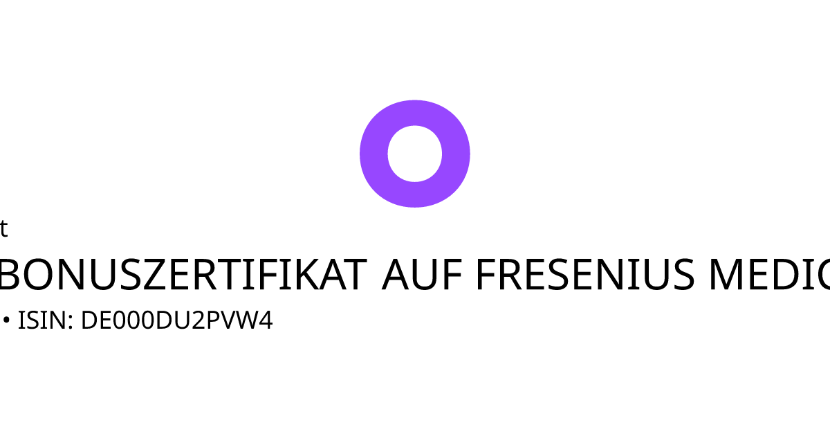 Dieses Capped-Bonus-Zertifikat bezieht sich auf den Basiswert Fresenius Medical Care AG und hat den Fälligkeitstag am 25.09.2026. Das Produkt ist mit einem Sicherheitslevel von 32,50 EUR und einem Cap von 60,00 EUR ausgestattet. Der Anleger partizipiert unter Berücksichtigung des Bezugsverhältnisses von 1,00 an der Entwicklung des Basiswertes, die Rückzahlung ist allerdings auf maximal 60,00 EUR begrenzt (Cap multipliziert mit dem Bezugsverhältnis). Notiert der Basiswert während des Beobachtungszeitraums vom 21.08.2025 bis zum 18.09.2026 nie auf oder unter dem Sicherheitslevel wird am Ende der Laufzeit mindestens der Bonusbetrag von 60,00 EUR und maximal der Höchstbetrag ausbezahlt.