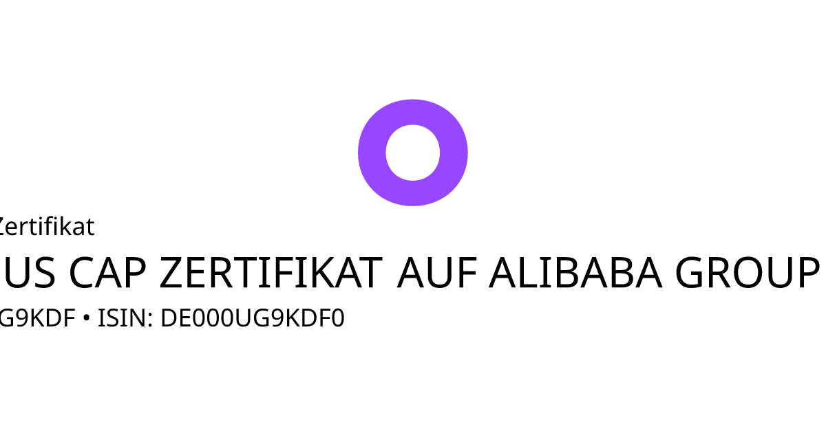 Dieses Capped-Bonus-Zertifikat bezieht sich auf den Basiswert Alibaba Group Holding Ltd. (ADRs) und hat den Fälligkeitstag am 27.03.2026. Das Produkt ist mit einem Sicherheitslevel von 95,00 USD und einem Cap von 150,00 USD ausgestattet. Der Anleger partizipiert unter Berücksichtigung des Bezugsverhältnisses von 1,00 an der Entwicklung des Basiswertes, die Rückzahlung ist allerdings auf maximal 150,00 EUR begrenzt (Cap multipliziert mit dem Bezugsverhältnis). Notiert der Basiswert während des Beobachtungszeitraums vom 05.09.2025 bis zum 20.03.2026 nie auf oder unter dem Sicherheitslevel wird am Ende der Laufzeit mindestens der Bonusbetrag von 150,00 EUR und maximal der Höchstbetrag ausbezahlt.