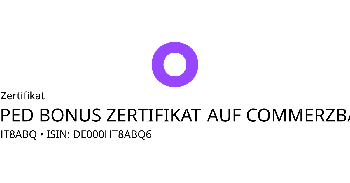 Dieses Capped-Bonus-Zertifikat bezieht sich auf den Basiswert Commerzbank AG und hat den Fälligkeitstag am 26.06.2026. Das Produkt ist mit einem Sicherheitslevel von 26,00 EUR und einem Cap von 44,00 EUR ausgestattet. Der Anleger partizipiert unter Berücksichtigung des Bezugsverhältnisses von 1,00 an der Entwicklung des Basiswertes, die Rückzahlung ist allerdings auf maximal 44,00 EUR begrenzt (Cap multipliziert mit dem Bezugsverhältnis). Notiert der Basiswert während des Beobachtungszeitraums vom 12.09.2025 bis zum 19.06.2026 nie auf oder unter dem Sicherheitslevel wird am Ende der Laufzeit mindestens der Bonusbetrag von 44,00 EUR und maximal der Höchstbetrag ausbezahlt.