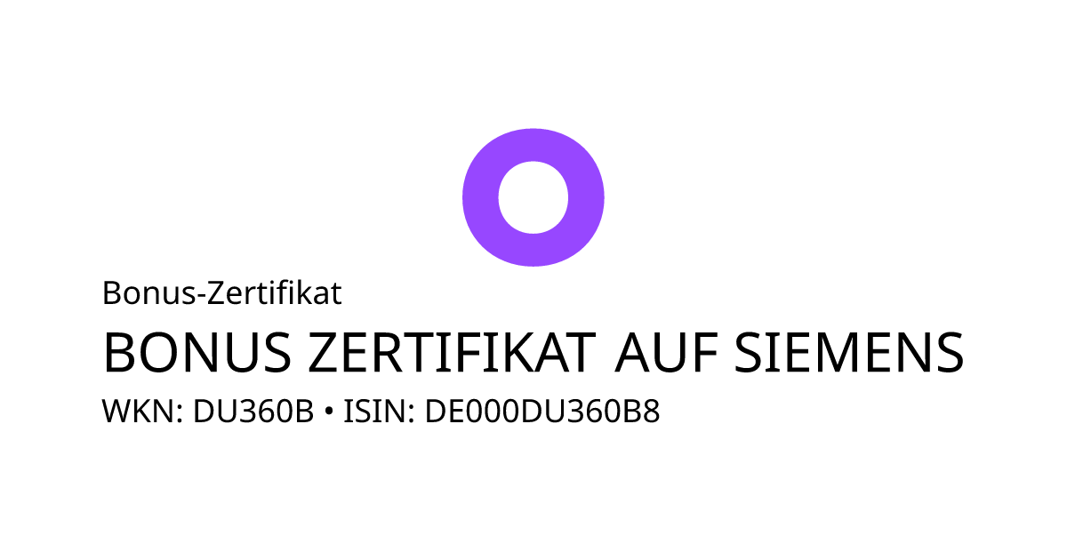 Dieses Bonus-Zertifikat bezieht sich auf den Basiswert Siemens AG und hat den Fälligkeitstag am 30.03.2027. Das Produkt ist mit einem Sicherheitslevel von 180,00 EUR ausgestattet. Der Anleger partizipiert unter Berücksichtigung des Bezugsverhältnisses von 1,00 an der Entwicklung des Basiswertes. Notiert der Basiswert während des Beobachtungszeitraums vom 10.10.2025 bis zum 19.03.2027 nie auf oder unter dem Sicherheitslevel wird am Ende der Laufzeit mindestens der Bonusbetrag von 300,00 EUR ausbezahlt.