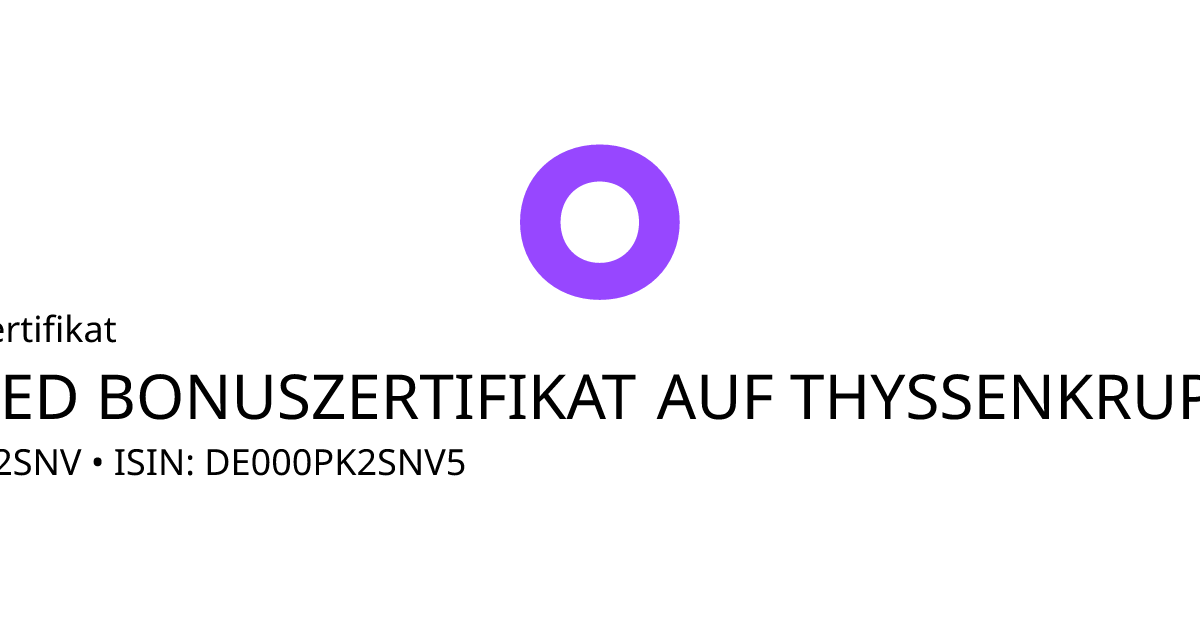 Dieses Capped-Bonus-Zertifikat bezieht sich auf den Basiswert thyssenkrupp AG und hat den Fälligkeitstag am 25.03.2027. Das Produkt ist mit einem Sicherheitslevel von 7,00 EUR und einem Cap von 12,00 EUR ausgestattet. Der Anleger partizipiert unter Berücksichtigung des Bezugsverhältnisses von 1,00 an der Entwicklung des Basiswertes, die Rückzahlung ist allerdings auf maximal 12,00 EUR begrenzt (Cap multipliziert mit dem Bezugsverhältnis). Notiert der Basiswert während des Beobachtungszeitraums vom 13.11.2025 bis zum 19.03.2027 nie auf oder unter dem Sicherheitslevel wird am Ende der Laufzeit mindestens der Bonusbetrag von 12,00 EUR und maximal der Höchstbetrag ausbezahlt.