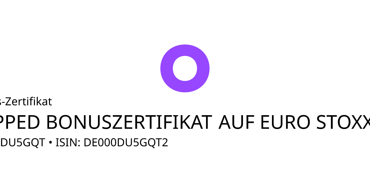 Dieses Capped-Bonus-Zertifikat bezieht sich auf den Basiswert EURO STOXX 50 und hat den Fälligkeitstag am 30.03.2027. Das Produkt ist mit einem Sicherheitslevel von 5.200,00 Punkte und einem Cap von 7.000,00 Punkte ausgestattet. Der Anleger partizipiert unter Berücksichtigung des Bezugsverhältnisses von 0,01 an der Entwicklung des Basiswertes, die Rückzahlung ist allerdings auf maximal 70,00 EUR begrenzt (Cap multipliziert mit dem Bezugsverhältnis). Notiert der Basiswert während des Beobachtungszeitraums vom 14.11.2025 bis zum 19.03.2027 nie auf oder unter dem Sicherheitslevel wird am Ende der Laufzeit mindestens der Bonusbetrag von 70,00 EUR und maximal der Höchstbetrag ausbezahlt.