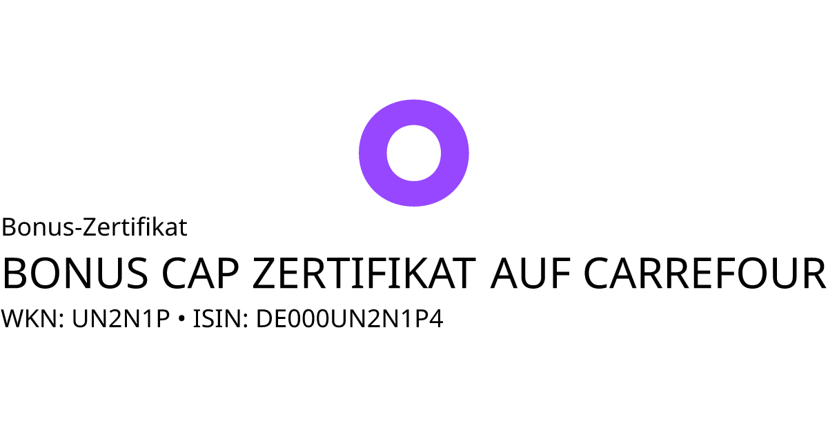 Dieses Capped-Bonus-Zertifikat bezieht sich auf den Basiswert Carrefour S.A. und hat den Fälligkeitstag am 26.06.2026. Das Produkt ist mit einem Sicherheitslevel von 11,50 EUR und einem Cap von 17,00 EUR ausgestattet. Der Anleger partizipiert unter Berücksichtigung des Bezugsverhältnisses von 1,00 an der Entwicklung des Basiswertes, die Rückzahlung ist allerdings auf maximal 17,00 EUR begrenzt (Cap multipliziert mit dem Bezugsverhältnis). Notiert der Basiswert während des Beobachtungszeitraums vom 19.12.2025 bis zum 19.06.2026 nie auf oder unter dem Sicherheitslevel wird am Ende der Laufzeit mindestens der Bonusbetrag von 17,00 EUR und maximal der Höchstbetrag (in bar) ausbezahlt. Andernfalls erfolgt die Rückzahlung in Anteilen des Basiswertes oder eines Referenzwertpapiers.