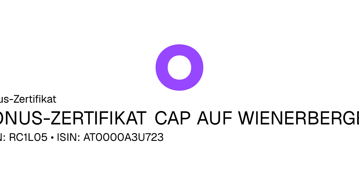 Dieses Capped-Bonus-Zertifikat bezieht sich auf den Basiswert Wienerberger AG und hat den Fälligkeitstag am 22.09.2027. Das Produkt ist mit einem Sicherheitslevel von 18,80 EUR und einem Cap von 32,00 EUR ausgestattet. Der Anleger partizipiert unter Berücksichtigung des Bezugsverhältnisses von 1,00 an der Entwicklung des Basiswertes, die Rückzahlung ist allerdings auf maximal 32,00 EUR begrenzt (Cap multipliziert mit dem Bezugsverhältnis). Notiert der Basiswert während des Beobachtungszeitraums vom 22.04.2026 bis zum 17.09.2027 nie auf oder unter dem Sicherheitslevel wird am Ende der Laufzeit mindestens der Bonusbetrag von 32,00 EUR und maximal der Höchstbetrag ausbezahlt.