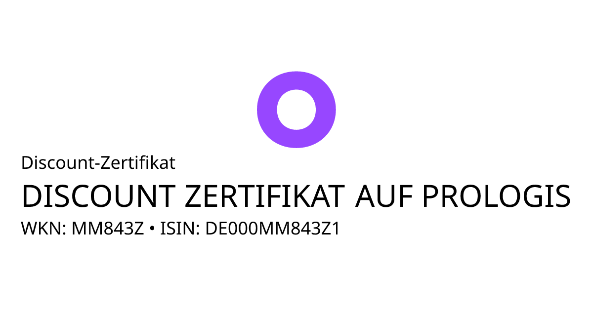 Dieses Discount-Zertifikat bezieht sich auf den Basiswert Prologis Inc. und hat den Fälligkeitstag am 25.09.2026. Im Vergleich zu einem Direktinvestment in den Basiswert erhält der Anleger einen Preisabschlag (Discount), partizipiert im Gegenzug nur bis zum Cap von 100,00 USD an der Entwicklung des Basiswertes. Am Ende der Laufzeit erfolgt eine Rückzahlung in Höhe des Kurses des Basiswertes bereinigt um das Bezugsverhältnis von 1,00. Aufgrund des Cap beträgt die maximale Rückzahlung 100,00 USD (Cap multipliziert mit dem Bezugsverhältnis).
