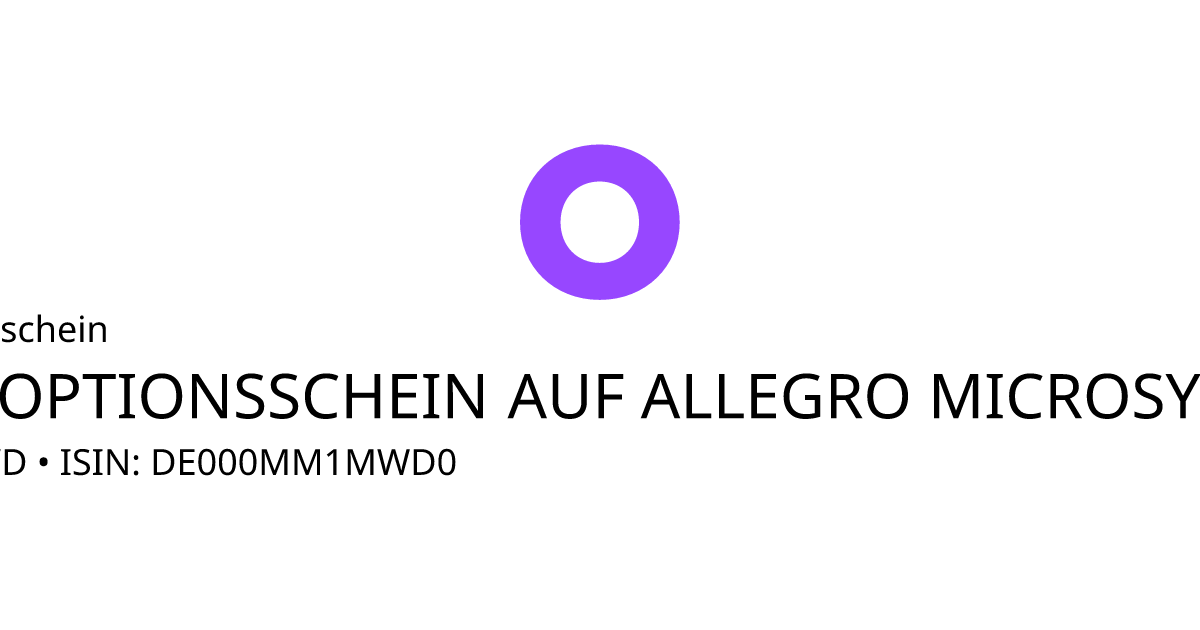 Mit diesem Faktor-Optionsschein partizipiert der Anleger mit einem konstanten Hebel von 10,00 an der positiven und negativen Entwicklung des Basiswertes Allegro MicroSystems Inc.. Das Produkt hat eine unbegrenzte Laufzeit. Der Emittent hat das Recht das Optionsschein unter Einhaltung einer Frist zu kündigen. Das Produkt ist mit einer Knock-Out Schwelle ausgestattet. Durchbricht der Basiswert während der Laufzeit die Knock-Out Schwelle führt dies zu einer Terminierung des Produkts. Bitte die Angaben in den Endgültigen Bedingungen beachten.