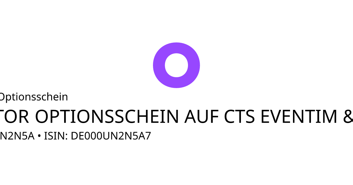 Mit diesem Faktor-Optionsschein partizipiert der Anleger mit einem konstanten Hebel von 9,00 an der positiven und negativen Entwicklung des Basiswertes CTS Eventim AG & Co. KGaA. Das Produkt hat eine unbegrenzte Laufzeit. Der Emittent hat das Recht das Optionsschein unter Einhaltung einer Frist zu kündigen. Das Produkt ist mit einer Knock-Out Schwelle ausgestattet. Durchbricht der Basiswert während der Laufzeit die Knock-Out Schwelle führt dies zu einer Terminierung des Produkts. Bitte die Angaben in den Endgültigen Bedingungen beachten.