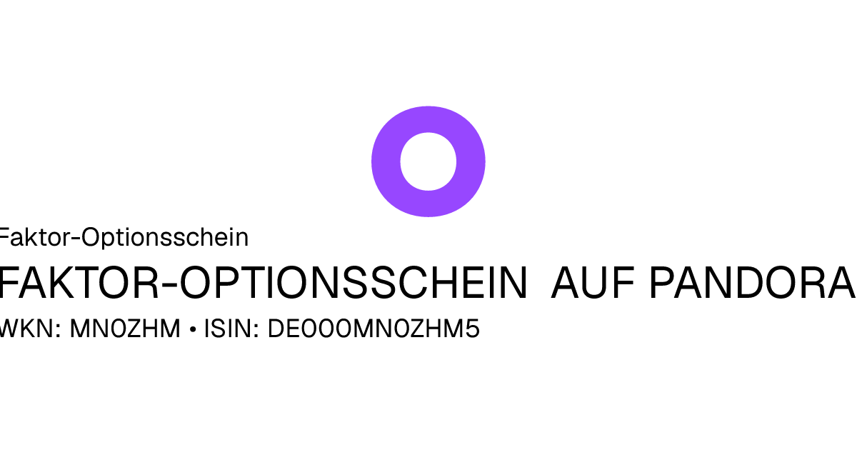 Mit diesem Faktor-Optionsschein partizipiert der Anleger mit einem konstanten Hebel von 4,00 an der positiven und negativen Entwicklung des Basiswertes Pandora A/S. Das Produkt hat eine unbegrenzte Laufzeit. Der Emittent hat das Recht das Optionsschein unter Einhaltung einer Frist zu kündigen. Das Produkt ist mit einer Knock-Out Schwelle ausgestattet. Durchbricht der Basiswert während der Laufzeit die Knock-Out Schwelle führt dies zu einer Terminierung des Produkts. Bitte die Angaben in den Endgültigen Bedingungen beachten.