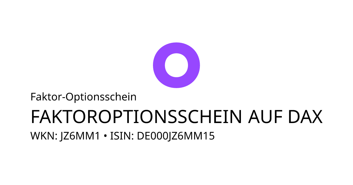 Mit diesem Faktor-Optionsschein partizipiert der Anleger mit einem konstanten Hebel von 27,00 an der positiven und negativen Entwicklung des Basiswertes DAX. Das Produkt hat eine unbegrenzte Laufzeit. Der Emittent hat das Recht das Optionsschein unter Einhaltung einer Frist zu kündigen. Das Produkt ist mit einer Knock-Out Schwelle ausgestattet. Durchbricht der Basiswert während der Laufzeit die Knock-Out Schwelle führt dies zu einer Terminierung des Produkts. Bitte die Angaben in den Endgültigen Bedingungen beachten.