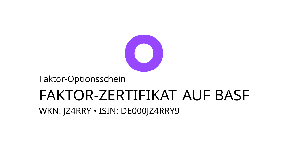 Mit diesem Faktor-Optionsschein partizipiert der Anleger mit einem konstanten Hebel von 14,00 an der positiven und negativen Entwicklung des Basiswertes BASF SE. Das Produkt hat eine unbegrenzte Laufzeit. Der Emittent hat das Recht das Optionsschein unter Einhaltung einer Frist zu kündigen. Das Produkt ist mit einer Knock-Out Schwelle ausgestattet. Durchbricht der Basiswert während der Laufzeit die Knock-Out Schwelle führt dies zu einer Terminierung des Produkts. Bitte die Angaben in den Endgültigen Bedingungen beachten.