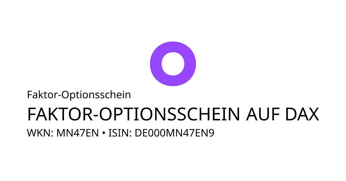 Mit diesem Faktor-Optionsschein partizipiert der Anleger mit einem konstanten Hebel von 12,00 an der positiven und negativen Entwicklung des Basiswertes DAX. Das Produkt hat eine unbegrenzte Laufzeit. Der Emittent hat das Recht das Optionsschein unter Einhaltung einer Frist zu kündigen. Das Produkt ist mit einer Knock-Out Schwelle ausgestattet. Durchbricht der Basiswert während der Laufzeit die Knock-Out Schwelle führt dies zu einer Terminierung des Produkts. Bitte die Angaben in den Endgültigen Bedingungen beachten.