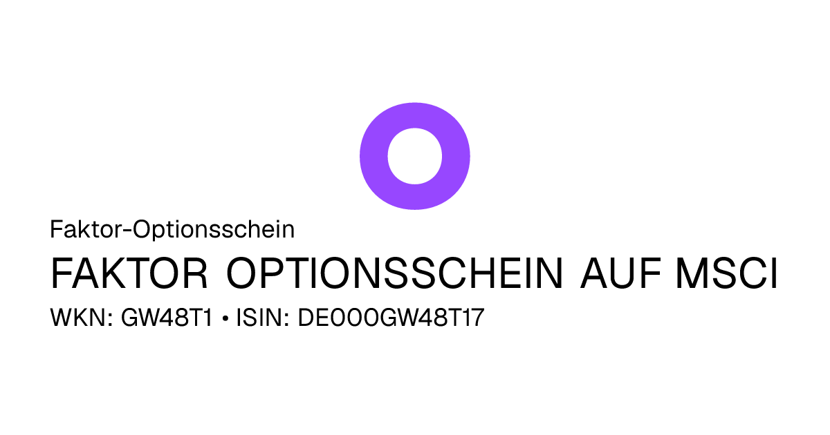 Mit diesem Faktor-Optionsschein partizipiert der Anleger mit einem konstanten Hebel von 15,00 an der positiven und negativen Entwicklung des Basiswertes MSCI Inc.. Das Produkt hat eine unbegrenzte Laufzeit. Der Emittent hat das Recht das Optionsschein unter Einhaltung einer Frist zu kündigen. Das Produkt ist mit einer Knock-Out Schwelle ausgestattet. Durchbricht der Basiswert während der Laufzeit die Knock-Out Schwelle führt dies zu einer Terminierung des Produkts. Bitte die Angaben in den Endgültigen Bedingungen beachten.