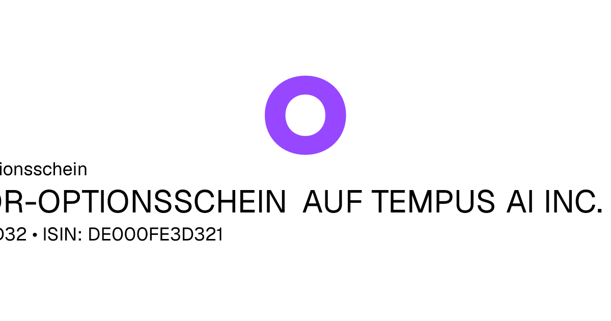Mit diesem Faktor-Optionsschein partizipiert der Anleger mit einem konstanten Hebel von 5,00 an der positiven und negativen Entwicklung des Basiswertes Tempus AI Inc.. Das Produkt hat eine unbegrenzte Laufzeit. Der Emittent hat das Recht das Optionsschein unter Einhaltung einer Frist zu kündigen.