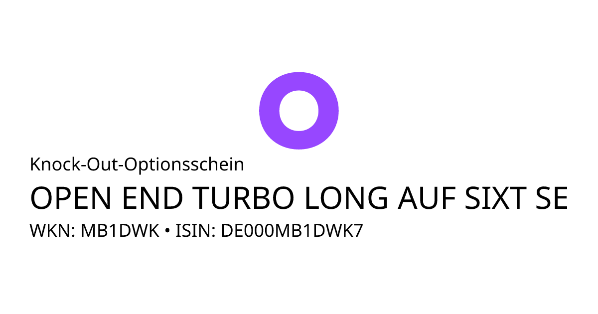 Dieser Open-End Knock-Out Optionsschein (Call) bezieht sich auf den Basiswert Sixt SE und hat eine unbegrenzte Laufzeit. Es handelt sich um ein Hebelprodukt, d.h. der Anleger partizipiert überproportional an der positiven und negativen Entwicklung des Basiswertes. Das Produkt ist mit einer Knock-Out Schwelle bei 52,2503 EUR ausgestattet. Durchbricht der Basiswert während der Laufzeit die Knock-Out Schwelle wird das Produkt ausgeknockt und verfällt sofort wertlos. Der Anleger hat während der Laufzeit ein Ausübungsrecht. Bei Ausübung berechnet sich die Rückzahlung durch die Differenz zwischen dem Kurs des Basiswertes und dem Basispreis von 52,2503 EUR bereinigt um das Bezugsverhältnis von 0,10. Der Emittent hat das Recht den Optionsschein unter Einhaltung einer Frist zu kündigen.