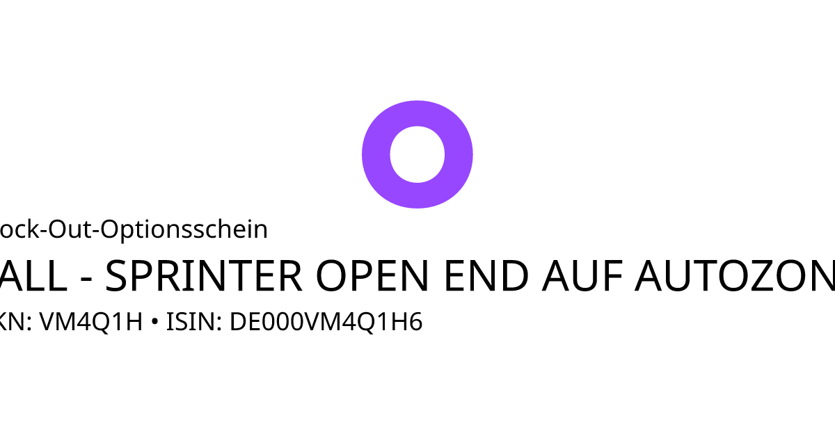 Dieser Open-End Knock-Out Optionsschein (Call) bezieht sich auf den Basiswert Autozone Inc. und hat eine unbegrenzte Laufzeit. Es handelt sich um ein Hebelprodukt, d.h. der Anleger partizipiert überproportional an der positiven und negativen Entwicklung des Basiswertes. Das Produkt ist mit einer Knock-Out Schwelle bei 2.983,05 USD ausgestattet. Durchbricht der Basiswert während der Laufzeit die Knock-Out Schwelle wird das Produkt ausgeknockt und verfällt sofort wertlos. Der Anleger hat während der Laufzeit ein Ausübungsrecht. Bei Ausübung berechnet sich die Rückzahlung durch die Differenz zwischen dem Kurs des Basiswertes und dem Basispreis von 2.983,05 USD bereinigt um das Bezugsverhältnis von 0,01. Der Emittent hat das Recht den Optionsschein unter Einhaltung einer Frist zu kündigen.