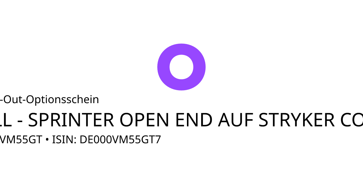 Dieser Open-End Knock-Out Optionsschein (Call) bezieht sich auf den Basiswert Stryker Corp. und hat eine unbegrenzte Laufzeit. Es handelt sich um ein Hebelprodukt, d.h. der Anleger partizipiert überproportional an der positiven und negativen Entwicklung des Basiswertes. Das Produkt ist mit einer Knock-Out Schwelle bei 302,43 USD ausgestattet. Durchbricht der Basiswert während der Laufzeit die Knock-Out Schwelle wird das Produkt ausgeknockt und verfällt sofort wertlos. Der Anleger hat während der Laufzeit ein Ausübungsrecht. Bei Ausübung berechnet sich die Rückzahlung durch die Differenz zwischen dem Kurs des Basiswertes und dem Basispreis von 302,43 USD bereinigt um das Bezugsverhältnis von 0,10. Der Emittent hat das Recht den Optionsschein unter Einhaltung einer Frist zu kündigen.