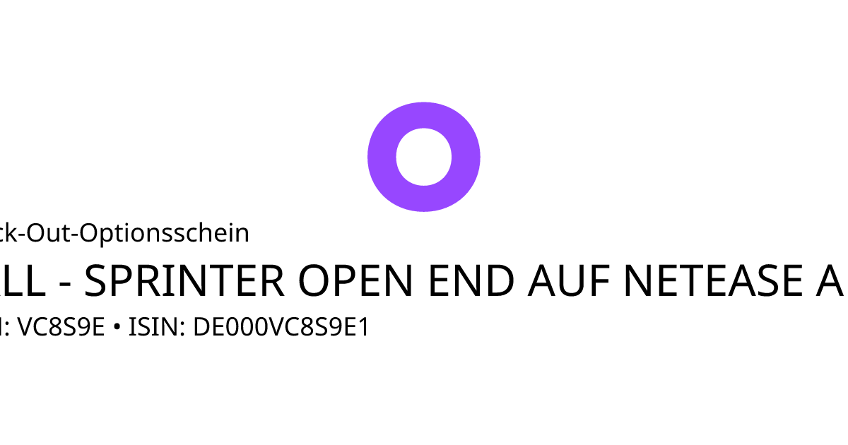 Dieser Open-End Knock-Out Optionsschein (Call) bezieht sich auf den Basiswert NetEase Inc. (ADRs) und hat eine unbegrenzte Laufzeit. Es handelt sich um ein Hebelprodukt, d.h. der Anleger partizipiert überproportional an der positiven und negativen Entwicklung des Basiswertes. Das Produkt ist mit einer Knock-Out Schwelle bei 89,50 USD ausgestattet. Durchbricht der Basiswert während der Laufzeit die Knock-Out Schwelle wird das Produkt ausgeknockt und verfällt sofort wertlos. Der Anleger hat während der Laufzeit ein Ausübungsrecht. Bei Ausübung berechnet sich die Rückzahlung durch die Differenz zwischen dem Kurs des Basiswertes und dem Basispreis von 89,50 USD bereinigt um das Bezugsverhältnis von 0,10. Der Emittent hat das Recht den Optionsschein unter Einhaltung einer Frist zu kündigen.