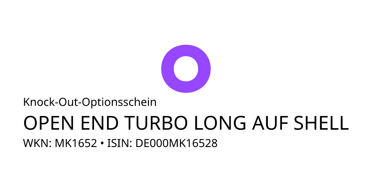 Dieser Open-End Knock-Out Optionsschein (Call) bezieht sich auf den Basiswert Shell PLC und hat eine unbegrenzte Laufzeit. Es handelt sich um ein Hebelprodukt, d.h. der Anleger partizipiert überproportional an der positiven und negativen Entwicklung des Basiswertes. Das Produkt ist mit einer Knock-Out Schwelle bei 14,7496 EUR ausgestattet. Durchbricht der Basiswert während der Laufzeit die Knock-Out Schwelle wird das Produkt ausgeknockt und verfällt sofort wertlos. Der Anleger hat während der Laufzeit ein Ausübungsrecht. Bei Ausübung berechnet sich die Rückzahlung durch die Differenz zwischen dem Kurs des Basiswertes und dem Basispreis von 14,7496 EUR bereinigt um das Bezugsverhältnis von 0,10. Der Emittent hat das Recht den Optionsschein unter Einhaltung einer Frist zu kündigen.