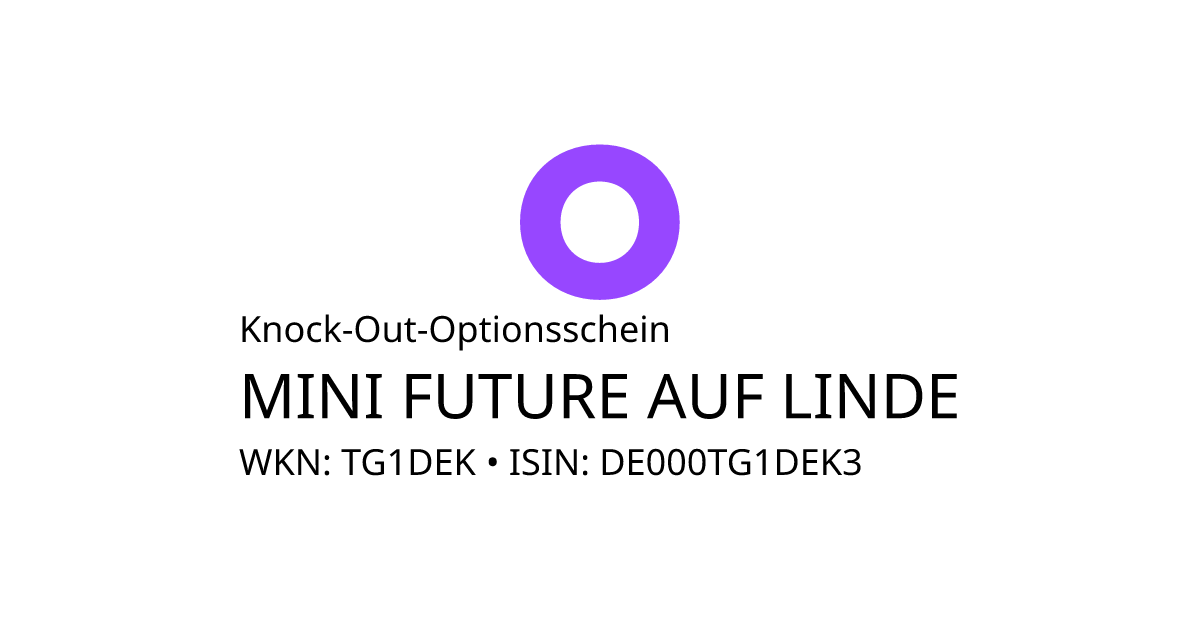 Dieser Open-End Knock-Out Optionsschein mit Stop-Loss (Call) bezieht sich auf den Basiswert Linde PLC und hat eine unbegrenzte Laufzeit. Es handelt sich um ein Hebelprodukt, d.h. der Anleger partizipiert überproportional an der positiven und negativen Entwicklung des Basiswertes. Das Produkt ist mit einer Knock-Out Schwelle bei 353,67532 EUR ausgestattet. Durchbricht der Basiswert während der Laufzeit die Knock-Out Schwelle wird das Produkt ausgeknockt und unmittelbar zum Restwert zurückbezahlt. Der Anleger hat während der Laufzeit an festgelegten Terminen ein Ausübungsrecht. Bei Ausübung berechnet sich die Rückzahlung durch die Differenz zwischen dem Kurs des Basiswertes und dem Basispreis von 330,53768 EUR bereinigt um das Bezugsverhältnis von 0,02. Der Emittent hat das Recht den Optionsschein unter Einhaltung einer Frist zu kündigen.
