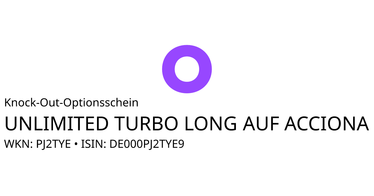 Dieser Open-End Knock-Out Optionsschein (Call) bezieht sich auf den Basiswert Acciona S.A. und hat eine unbegrenzte Laufzeit. Es handelt sich um ein Hebelprodukt, d.h. der Anleger partizipiert überproportional an der positiven und negativen Entwicklung des Basiswertes. Das Produkt ist mit einer Knock-Out Schwelle bei 132,4289 EUR ausgestattet. Durchbricht der Basiswert während der Laufzeit die Knock-Out Schwelle wird das Produkt ausgeknockt und verfällt sofort wertlos. Der Anleger hat während der Laufzeit an festgelegten Terminen ein Ausübungsrecht. Bei Ausübung berechnet sich die Rückzahlung durch die Differenz zwischen dem Kurs des Basiswertes und dem Basispreis von 132,4289 EUR bereinigt um das Bezugsverhältnis von 0,10. Der Emittent hat das Recht den Optionsschein unter Einhaltung einer Frist zu kündigen.