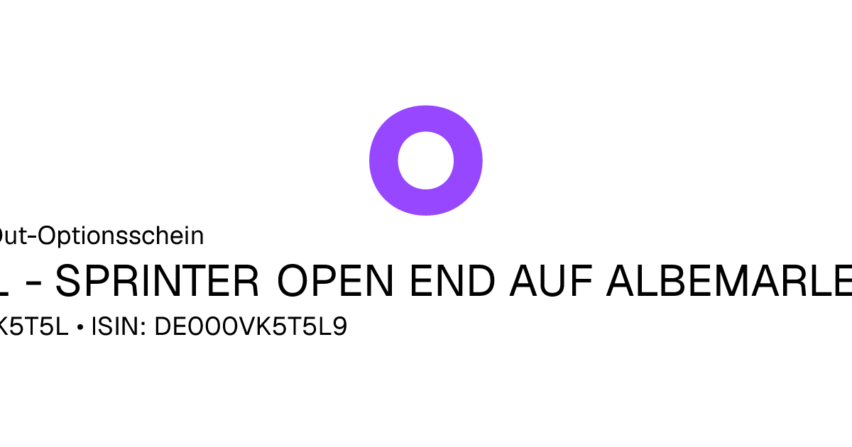 Dieser Open-End Knock-Out Optionsschein (Call) bezieht sich auf den Basiswert Albemarle Corp. und hat eine unbegrenzte Laufzeit. Es handelt sich um ein Hebelprodukt, d.h. der Anleger partizipiert überproportional an der positiven und negativen Entwicklung des Basiswertes. Das Produkt ist mit einer Knock-Out Schwelle bei 57,24 USD ausgestattet. Durchbricht der Basiswert während der Laufzeit die Knock-Out Schwelle wird das Produkt ausgeknockt und verfällt sofort wertlos. Der Anleger hat während der Laufzeit ein Ausübungsrecht. Bei Ausübung berechnet sich die Rückzahlung durch die Differenz zwischen dem Kurs des Basiswertes und dem Basispreis von 57,24 USD bereinigt um das Bezugsverhältnis von 0,10. Der Emittent hat das Recht den Optionsschein unter Einhaltung einer Frist zu kündigen.