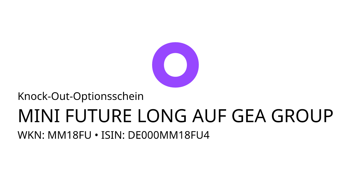 Dieser Open-End Knock-Out Optionsschein mit Stop-Loss (Call) bezieht sich auf den Basiswert GEA Group AG und hat eine unbegrenzte Laufzeit. Es handelt sich um ein Hebelprodukt, d.h. der Anleger partizipiert überproportional an der positiven und negativen Entwicklung des Basiswertes. Das Produkt ist mit einer Knock-Out Schwelle bei 60,70 EUR ausgestattet. Durchbricht der Basiswert während der Laufzeit die Knock-Out Schwelle wird das Produkt ausgeknockt und unmittelbar zum Restwert zurückbezahlt. Der Anleger hat während der Laufzeit ein Ausübungsrecht. Bei Ausübung berechnet sich die Rückzahlung durch die Differenz zwischen dem Kurs des Basiswertes und dem Basispreis von 56,7398 EUR bereinigt um das Bezugsverhältnis von 0,10. Der Emittent hat das Recht den Optionsschein unter Einhaltung einer Frist zu kündigen.