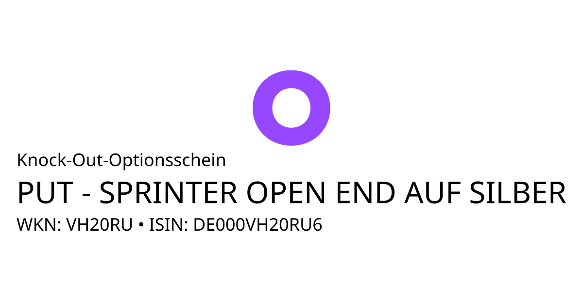 Dieser Open-End Knock-Out Optionsschein (Put) bezieht sich auf den Basiswert Silber und hat eine unbegrenzte Laufzeit. Es handelt sich um ein Hebelprodukt, d.h. der Anleger partizipiert überproportional an der positiven und negativen Entwicklung des Basiswertes. Das Produkt ist mit einer Knock-Out Schwelle bei 60,26 USD ausgestattet. Durchbricht der Basiswert während der Laufzeit die Knock-Out Schwelle wird das Produkt ausgeknockt und verfällt sofort wertlos. Der Anleger hat während der Laufzeit ein Ausübungsrecht. Bei Ausübung berechnet sich die Rückzahlung durch die Differenz zwischen dem Basispreis von 60,26 USD und dem Kurs des Basiswertes bereinigt um das Bezugsverhältnis von 1,00. Der Emittent hat das Recht den Optionsschein unter Einhaltung einer Frist zu kündigen.