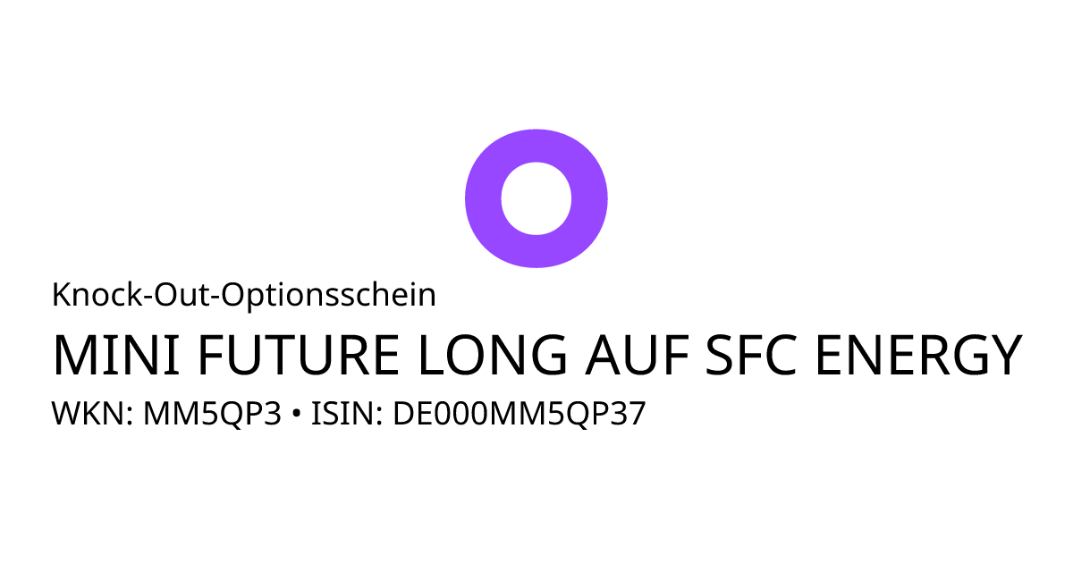 Dieser Open-End Knock-Out Optionsschein mit Stop-Loss (Call) bezieht sich auf den Basiswert SFC Energy AG und hat eine unbegrenzte Laufzeit. Es handelt sich um ein Hebelprodukt, d.h. der Anleger partizipiert überproportional an der positiven und negativen Entwicklung des Basiswertes. Das Produkt ist mit einer Knock-Out Schwelle bei 8,25 EUR ausgestattet. Durchbricht der Basiswert während der Laufzeit die Knock-Out Schwelle wird das Produkt ausgeknockt und unmittelbar zum Restwert zurückbezahlt. Der Anleger hat während der Laufzeit ein Ausübungsrecht. Bei Ausübung berechnet sich die Rückzahlung durch die Differenz zwischen dem Kurs des Basiswertes und dem Basispreis von 7,1682 EUR bereinigt um das Bezugsverhältnis von 1,00. Der Emittent hat das Recht den Optionsschein unter Einhaltung einer Frist zu kündigen.