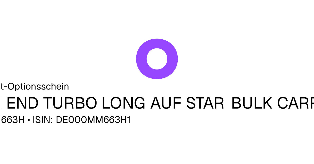 Dieser Open-End Knock-Out Optionsschein (Call) bezieht sich auf den Basiswert Star Bulk Carries Corp. und hat eine unbegrenzte Laufzeit. Es handelt sich um ein Hebelprodukt, d.h. der Anleger partizipiert überproportional an der positiven und negativen Entwicklung des Basiswertes. Das Produkt ist mit einer Knock-Out Schwelle bei 17,238 USD ausgestattet. Durchbricht der Basiswert während der Laufzeit die Knock-Out Schwelle wird das Produkt ausgeknockt und verfällt sofort wertlos. Der Anleger hat während der Laufzeit ein Ausübungsrecht. Bei Ausübung berechnet sich die Rückzahlung durch die Differenz zwischen dem Kurs des Basiswertes und dem Basispreis von 17,238 USD bereinigt um das Bezugsverhältnis von 1,00. Der Emittent hat das Recht den Optionsschein unter Einhaltung einer Frist zu kündigen.