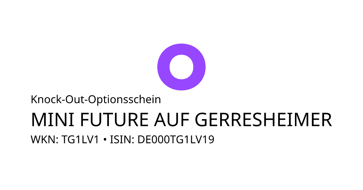 Dieser Open-End Knock-Out Optionsschein mit Stop-Loss (Call) bezieht sich auf den Basiswert Gerresheimer AG und hat eine unbegrenzte Laufzeit. Es handelt sich um ein Hebelprodukt, d.h. der Anleger partizipiert überproportional an der positiven und negativen Entwicklung des Basiswertes. Das Produkt ist mit einer Knock-Out Schwelle bei 22,33853 EUR ausgestattet. Durchbricht der Basiswert während der Laufzeit die Knock-Out Schwelle wird das Produkt ausgeknockt und unmittelbar zum Restwert zurückbezahlt. Der Anleger hat während der Laufzeit an festgelegten Terminen ein Ausübungsrecht. Bei Ausübung berechnet sich die Rückzahlung durch die Differenz zwischen dem Kurs des Basiswertes und dem Basispreis von 20,87713 EUR bereinigt um das Bezugsverhältnis von 0,10. Der Emittent hat das Recht den Optionsschein unter Einhaltung einer Frist zu kündigen.
