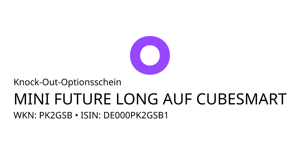 Dieser Open-End Knock-Out Optionsschein mit Stop-Loss (Call) bezieht sich auf den Basiswert CubeSmart L.P. und hat eine unbegrenzte Laufzeit. Es handelt sich um ein Hebelprodukt, d.h. der Anleger partizipiert überproportional an der positiven und negativen Entwicklung des Basiswertes. Das Produkt ist mit einer Knock-Out Schwelle bei 23,0343 USD ausgestattet. Durchbricht der Basiswert während der Laufzeit die Knock-Out Schwelle wird das Produkt ausgeknockt und unmittelbar zum Restwert zurückbezahlt. Der Anleger hat während der Laufzeit an festgelegten Terminen ein Ausübungsrecht. Bei Ausübung berechnet sich die Rückzahlung durch die Differenz zwischen dem Kurs des Basiswertes und dem Basispreis von 21,9374 USD bereinigt um das Bezugsverhältnis von 0,10. Der Emittent hat das Recht den Optionsschein unter Einhaltung einer Frist zu kündigen.