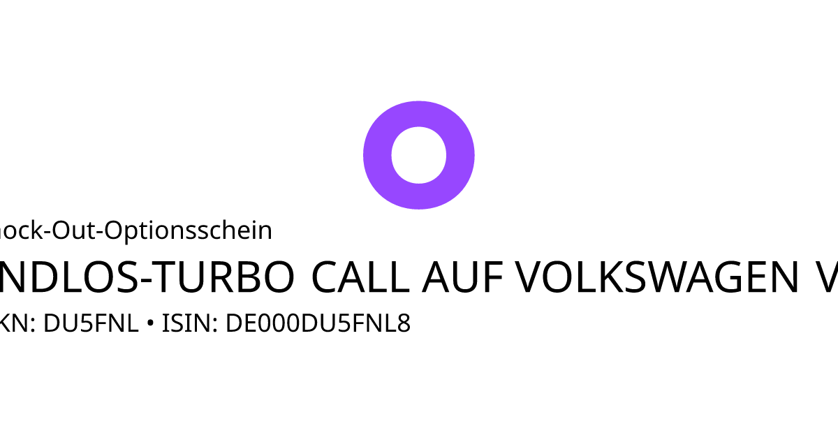 Dieser Open-End Knock-Out Optionsschein (Call) bezieht sich auf den Basiswert Volkswagen AG Vz. und hat eine unbegrenzte Laufzeit. Es handelt sich um ein Hebelprodukt, d.h. der Anleger partizipiert überproportional an der positiven und negativen Entwicklung des Basiswertes. Das Produkt ist mit einer Knock-Out Schwelle bei 92,1953 EUR ausgestattet. Durchbricht der Basiswert während der Laufzeit die Knock-Out Schwelle wird das Produkt ausgeknockt und verfällt sofort wertlos. Der Anleger hat während der Laufzeit an festgelegten Terminen ein Ausübungsrecht. Bei Ausübung berechnet sich die Rückzahlung durch die Differenz zwischen dem Kurs des Basiswertes und dem Basispreis von 92,1953 EUR bereinigt um das Bezugsverhältnis von 0,10. Der Emittent hat das Recht den Optionsschein unter Einhaltung einer Frist zu kündigen.