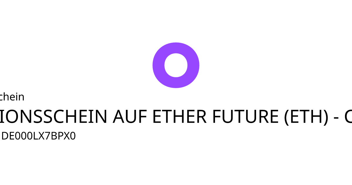 Dieser Knock-Out Optionsschein (Call) bezieht sich auf den Basiswert Ether Future 12/2025 (CME) USD und hat den Fälligkeitstag am 25.06.2026. Es handelt sich um ein Hebelprodukt, d.h. der Anleger partizipiert überproportional an der positiven und negativen Entwicklung des Basiswertes. Das Produkt ist mit einer Knock-Out Schwelle bei 2.423,00 USD ausgestattet. Durchbricht der Basiswert während der Laufzeit die Knock-Out Schwelle wird das Produkt ausgeknockt und verfällt sofort wertlos. Notiert der Kurs des Basiswertes am Ende der Laufzeit über dem Basispreis von 2.423,00 USD, berechnet sich die Rückzahlung durch die Differenz zwischen dem Kurs des Basiswertes und dem Basispreis bereinigt um das Bezugsverhältnis von 0,001.