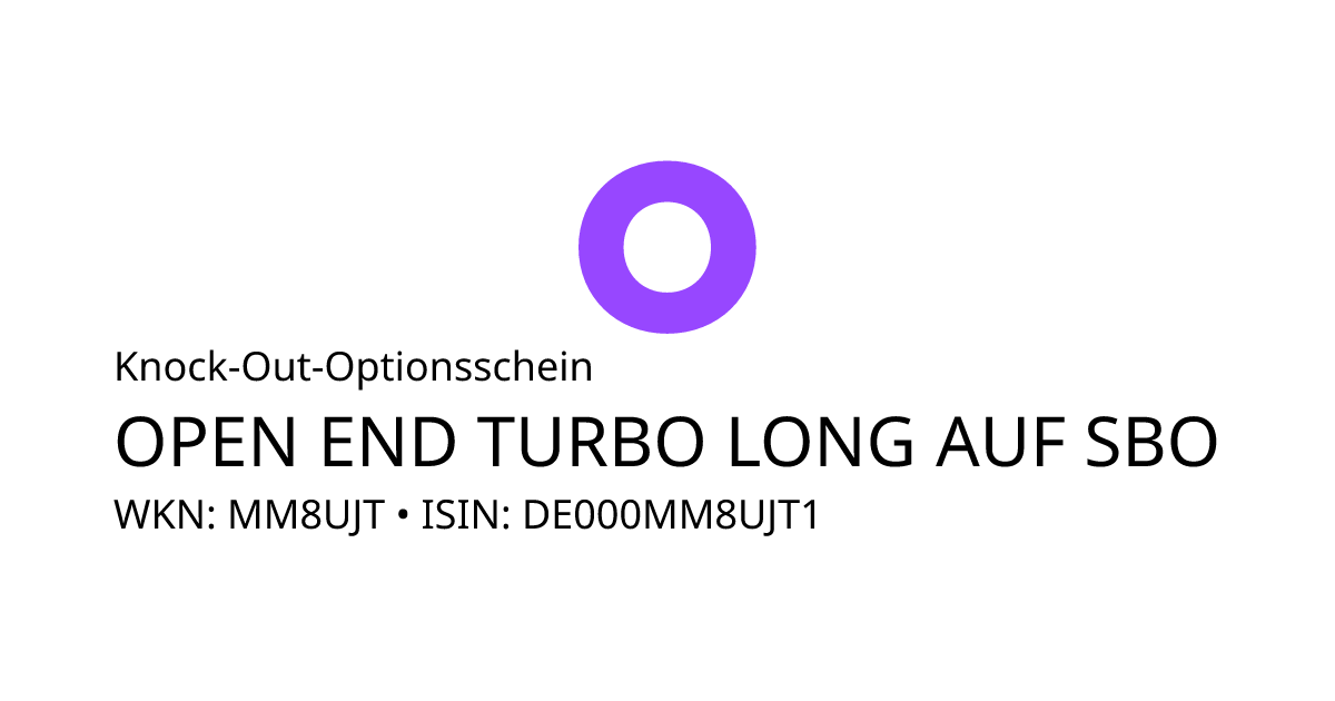 Dieser Open-End Knock-Out Optionsschein (Call) bezieht sich auf den Basiswert SBO AG und hat eine unbegrenzte Laufzeit. Es handelt sich um ein Hebelprodukt, d.h. der Anleger partizipiert überproportional an der positiven und negativen Entwicklung des Basiswertes. Das Produkt ist mit einer Knock-Out Schwelle bei 26,5198 EUR ausgestattet. Durchbricht der Basiswert während der Laufzeit die Knock-Out Schwelle wird das Produkt ausgeknockt und verfällt sofort wertlos. Der Anleger hat während der Laufzeit ein Ausübungsrecht. Bei Ausübung berechnet sich die Rückzahlung durch die Differenz zwischen dem Kurs des Basiswertes und dem Basispreis von 26,5198 EUR bereinigt um das Bezugsverhältnis von 0,10. Der Emittent hat das Recht den Optionsschein unter Einhaltung einer Frist zu kündigen.