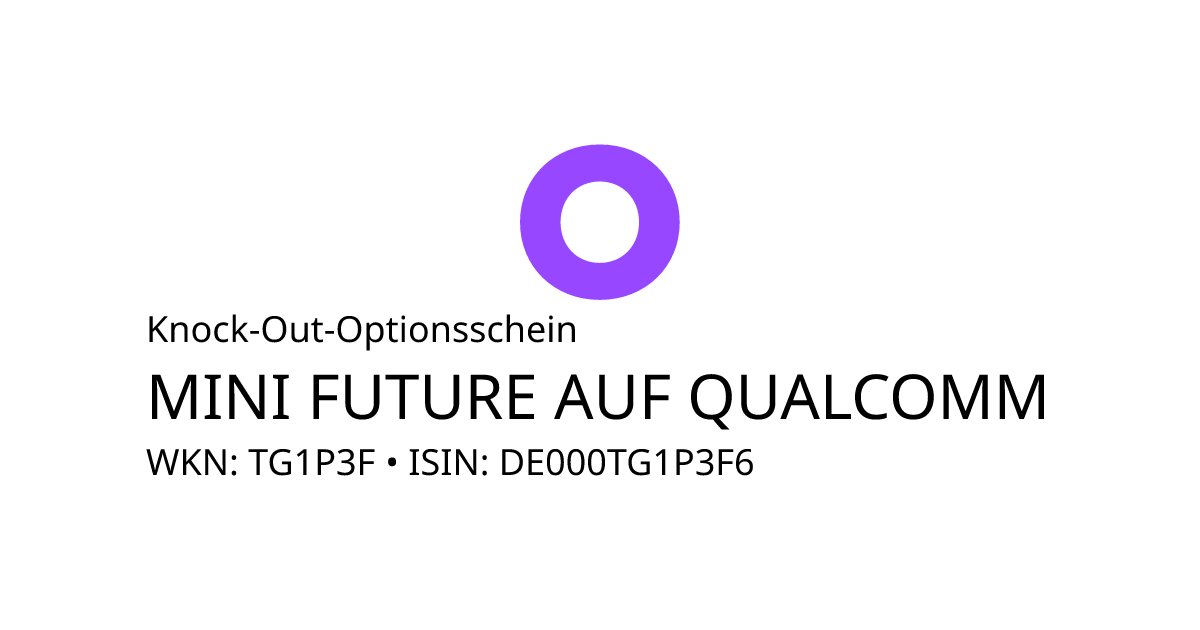 Dieser Open-End Knock-Out Optionsschein mit Stop-Loss (Call) bezieht sich auf den Basiswert QUALCOMM Inc. und hat eine unbegrenzte Laufzeit. Es handelt sich um ein Hebelprodukt, d.h. der Anleger partizipiert überproportional an der positiven und negativen Entwicklung des Basiswertes. Das Produkt ist mit einer Knock-Out Schwelle bei 142,5959 EUR ausgestattet. Durchbricht der Basiswert während der Laufzeit die Knock-Out Schwelle wird das Produkt ausgeknockt und unmittelbar zum Restwert zurückbezahlt. Der Anleger hat während der Laufzeit an festgelegten Terminen ein Ausübungsrecht. Bei Ausübung berechnet sich die Rückzahlung durch die Differenz zwischen dem Kurs des Basiswertes und dem Basispreis von 129,63263 EUR bereinigt um das Bezugsverhältnis von 0,02. Der Emittent hat das Recht den Optionsschein unter Einhaltung einer Frist zu kündigen.
