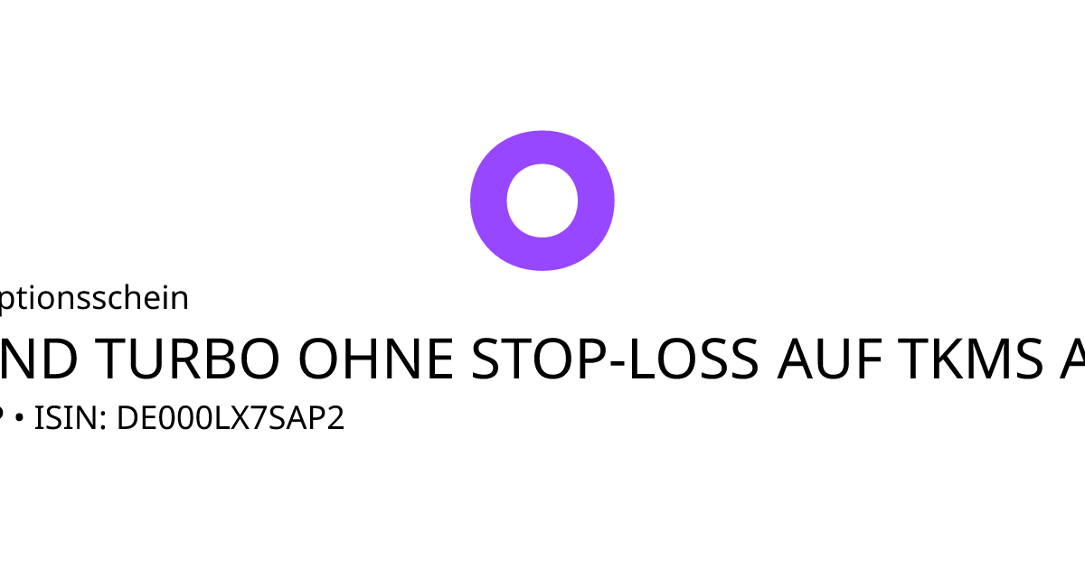 Dieser Open-End Knock-Out Optionsschein (Call) bezieht sich auf den Basiswert TKMS AG & Co. KGaA und hat eine unbegrenzte Laufzeit. Es handelt sich um ein Hebelprodukt, d.h. der Anleger partizipiert überproportional an der positiven und negativen Entwicklung des Basiswertes. Das Produkt ist mit einer Knock-Out Schwelle bei 68,075 EUR ausgestattet. Durchbricht der Basiswert während der Laufzeit die Knock-Out Schwelle wird das Produkt ausgeknockt und verfällt sofort wertlos. Der Anleger hat während der Laufzeit an festgelegten Terminen ein Ausübungsrecht. Bei Ausübung berechnet sich die Rückzahlung durch die Differenz zwischen dem Kurs des Basiswertes und dem Basispreis von 68,075 EUR bereinigt um das Bezugsverhältnis von 0,10. Der Emittent hat das Recht den Optionsschein unter Einhaltung einer Frist zu kündigen.