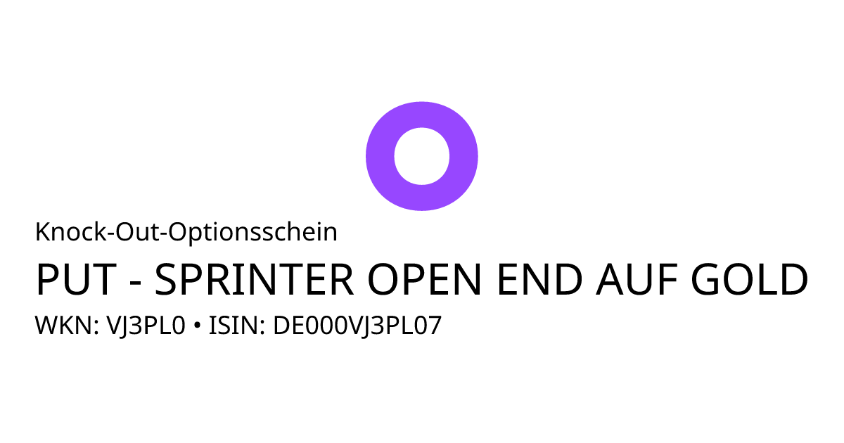 Dieser Open-End Knock-Out Optionsschein (Put) bezieht sich auf den Basiswert Gold und hat eine unbegrenzte Laufzeit. Es handelt sich um ein Hebelprodukt, d.h. der Anleger partizipiert überproportional an der positiven und negativen Entwicklung des Basiswertes. Das Produkt ist mit einer Knock-Out Schwelle bei 5.594,96 USD ausgestattet. Durchbricht der Basiswert während der Laufzeit die Knock-Out Schwelle wird das Produkt ausgeknockt und verfällt sofort wertlos. Der Anleger hat während der Laufzeit ein Ausübungsrecht. Bei Ausübung berechnet sich die Rückzahlung durch die Differenz zwischen dem Basispreis von 5.594,96 USD und dem Kurs des Basiswertes bereinigt um das Bezugsverhältnis von 0,10. Der Emittent hat das Recht den Optionsschein unter Einhaltung einer Frist zu kündigen.