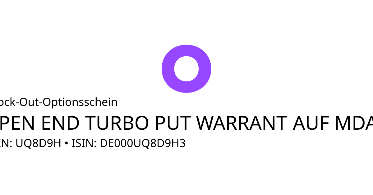 Dieser Open-End Knock-Out Optionsschein (Put) bezieht sich auf den Basiswert MDAX Performance Index und hat eine unbegrenzte Laufzeit. Es handelt sich um ein Hebelprodukt, d.h. der Anleger partizipiert überproportional an der positiven und negativen Entwicklung des Basiswertes. Das Produkt ist mit einer Knock-Out Schwelle bei 37.932,3967 Punkte ausgestattet. Durchbricht der Basiswert während der Laufzeit die Knock-Out Schwelle wird das Produkt ausgeknockt und verfällt sofort wertlos. Der Anleger hat während der Laufzeit an festgelegten Terminen ein Ausübungsrecht. Bei Ausübung berechnet sich die Rückzahlung durch die Differenz zwischen dem Basispreis von 37.932,3967 Punkte und dem Kurs des Basiswertes bereinigt um das Bezugsverhältnis von 0,001. Der Emittent hat das Recht den Optionsschein unter Einhaltung einer Frist zu kündigen.