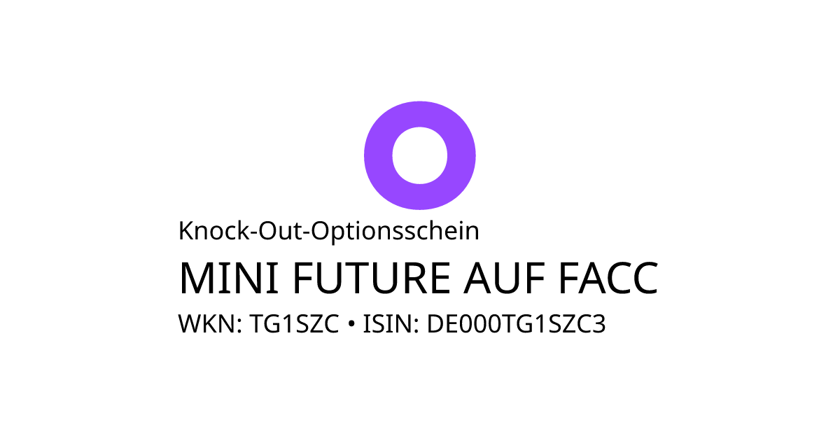 Dieser Open-End Knock-Out Optionsschein mit Stop-Loss (Call) bezieht sich auf den Basiswert Facc AG und hat eine unbegrenzte Laufzeit. Es handelt sich um ein Hebelprodukt, d.h. der Anleger partizipiert überproportional an der positiven und negativen Entwicklung des Basiswertes. Das Produkt ist mit einer Knock-Out Schwelle bei 10,9338 EUR ausgestattet. Durchbricht der Basiswert während der Laufzeit die Knock-Out Schwelle wird das Produkt ausgeknockt und unmittelbar zum Restwert zurückbezahlt. Der Anleger hat während der Laufzeit an festgelegten Terminen ein Ausübungsrecht. Bei Ausübung berechnet sich die Rückzahlung durch die Differenz zwischen dem Kurs des Basiswertes und dem Basispreis von 9,93982 EUR bereinigt um das Bezugsverhältnis von 0,10. Der Emittent hat das Recht den Optionsschein unter Einhaltung einer Frist zu kündigen.