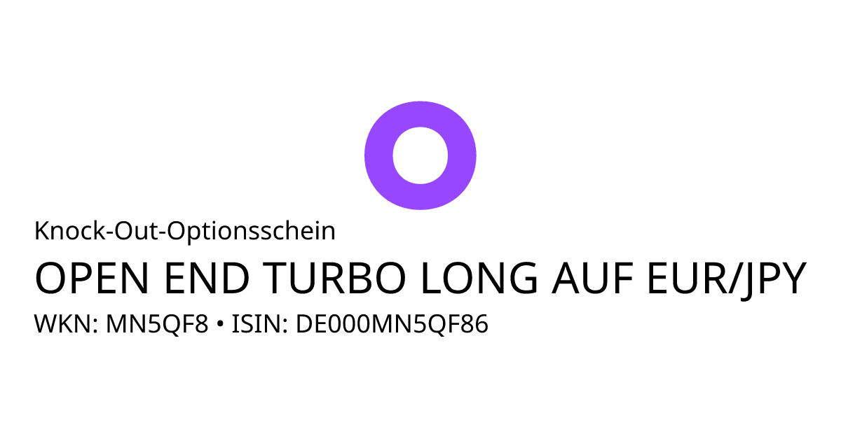 Dieser Open-End Knock-Out Optionsschein (Call) bezieht sich auf den Basiswert EUR/JPY und hat eine unbegrenzte Laufzeit. Es handelt sich um ein Hebelprodukt, d.h. der Anleger partizipiert überproportional an der positiven und negativen Entwicklung des Basiswertes. Das Produkt ist mit einer Knock-Out Schwelle bei 182,5618 JPY ausgestattet. Durchbricht der Basiswert während der Laufzeit die Knock-Out Schwelle wird das Produkt ausgeknockt und verfällt sofort wertlos. Der Anleger hat während der Laufzeit ein Ausübungsrecht. Bei Ausübung berechnet sich die Rückzahlung durch die Differenz zwischen dem Kurs des Basiswertes und dem Basispreis von 182,5618 JPY bereinigt um das Bezugsverhältnis von 100,00. Der Emittent hat das Recht den Optionsschein unter Einhaltung einer Frist zu kündigen.