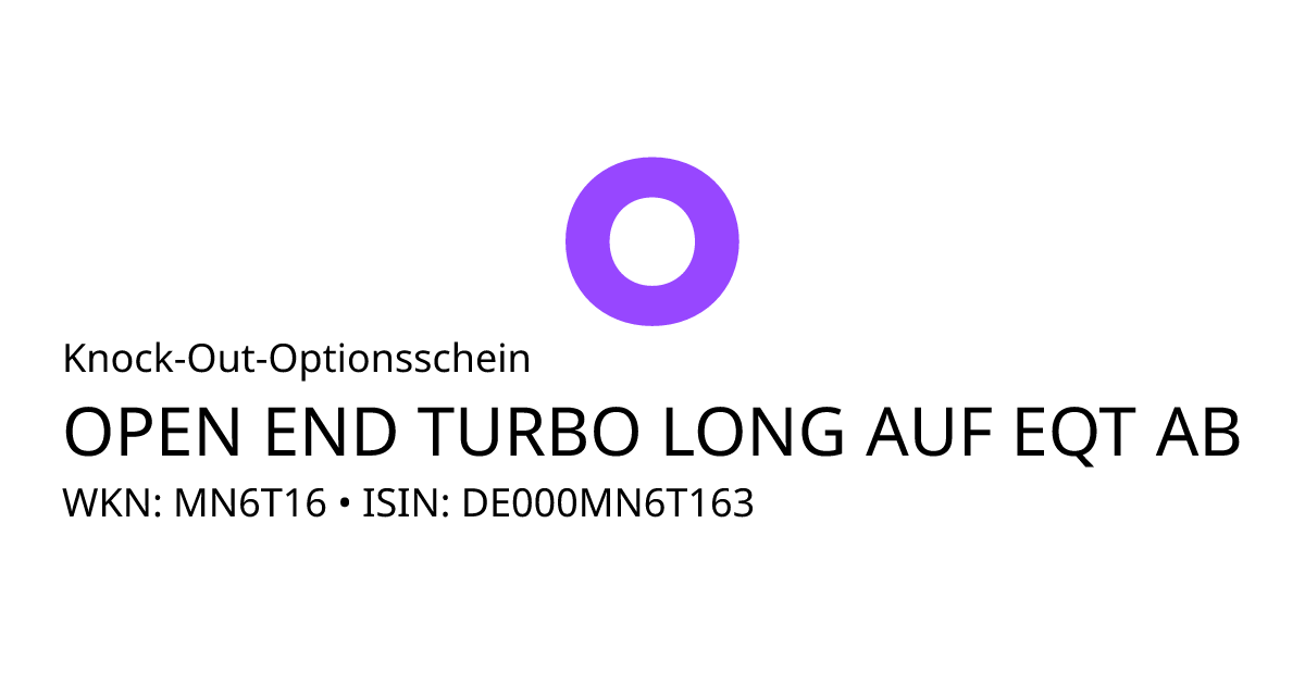 Dieser Open-End Knock-Out Optionsschein (Call) bezieht sich auf den Basiswert EQT AB und hat eine unbegrenzte Laufzeit. Es handelt sich um ein Hebelprodukt, d.h. der Anleger partizipiert überproportional an der positiven und negativen Entwicklung des Basiswertes. Das Produkt ist mit einer Knock-Out Schwelle bei 270,6772 SEK ausgestattet. Durchbricht der Basiswert während der Laufzeit die Knock-Out Schwelle wird das Produkt ausgeknockt und verfällt sofort wertlos. Der Anleger hat während der Laufzeit ein Ausübungsrecht. Bei Ausübung berechnet sich die Rückzahlung durch die Differenz zwischen dem Kurs des Basiswertes und dem Basispreis von 270,6772 SEK bereinigt um das Bezugsverhältnis von 0,10. Der Emittent hat das Recht den Optionsschein unter Einhaltung einer Frist zu kündigen.