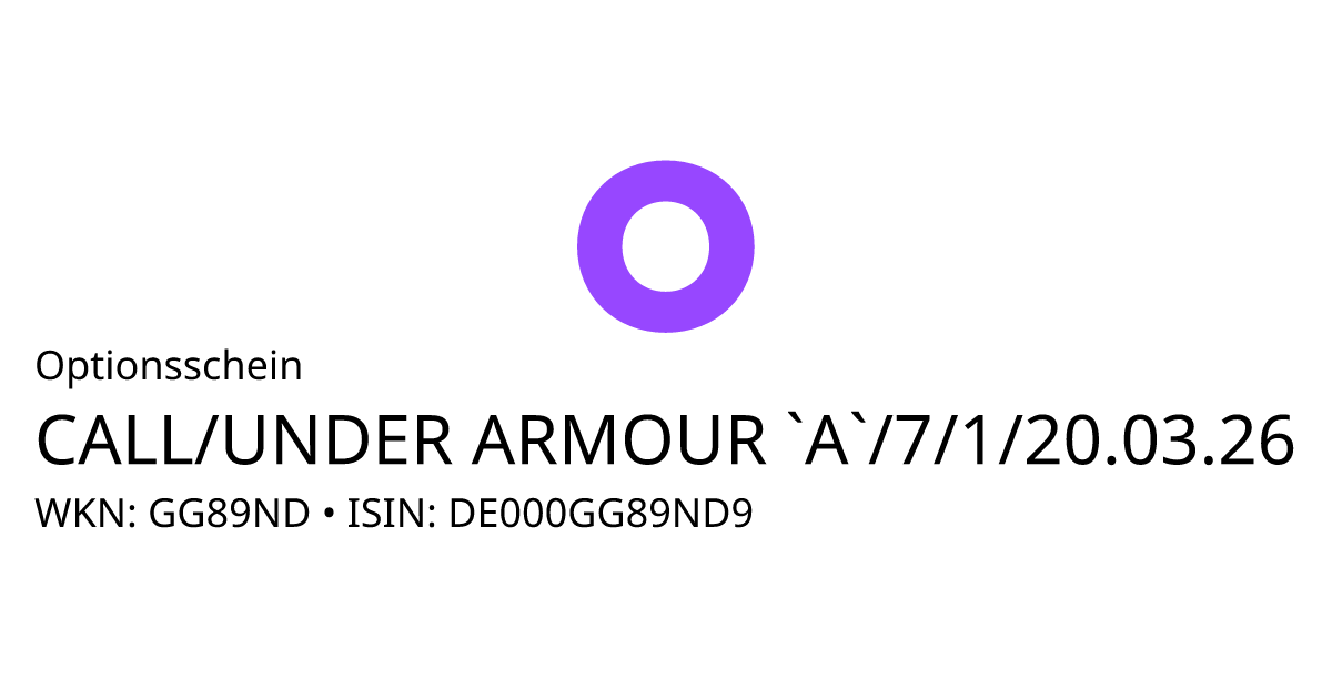 Dieser Optionsschein (Call) bezieht sich auf den Basiswert Under Armour Inc. (Class A) und hat den Fälligkeitstag am 25.03.2026. Es handelt sich um ein Hebelprodukt, d.h. der Anleger partizipiert überproportional an der positiven und negativen Entwicklung des Basiswertes. Der Anleger hat während der Laufzeit ein Ausübungsrecht. Bei Ausübung berechnet sich die Rückzahlung durch die Differenz zwischen dem Kurs des Basiswertes und dem Basispreis bereinigt um das Bezugsverhältnis von 1,00. Am Ende der Laufzeit kommt es zu einer automatischen Ausübung. Liegt der Kurs des Basiswertes dann unterhalb des Basispreises, verfällt das Produkt wertlos.