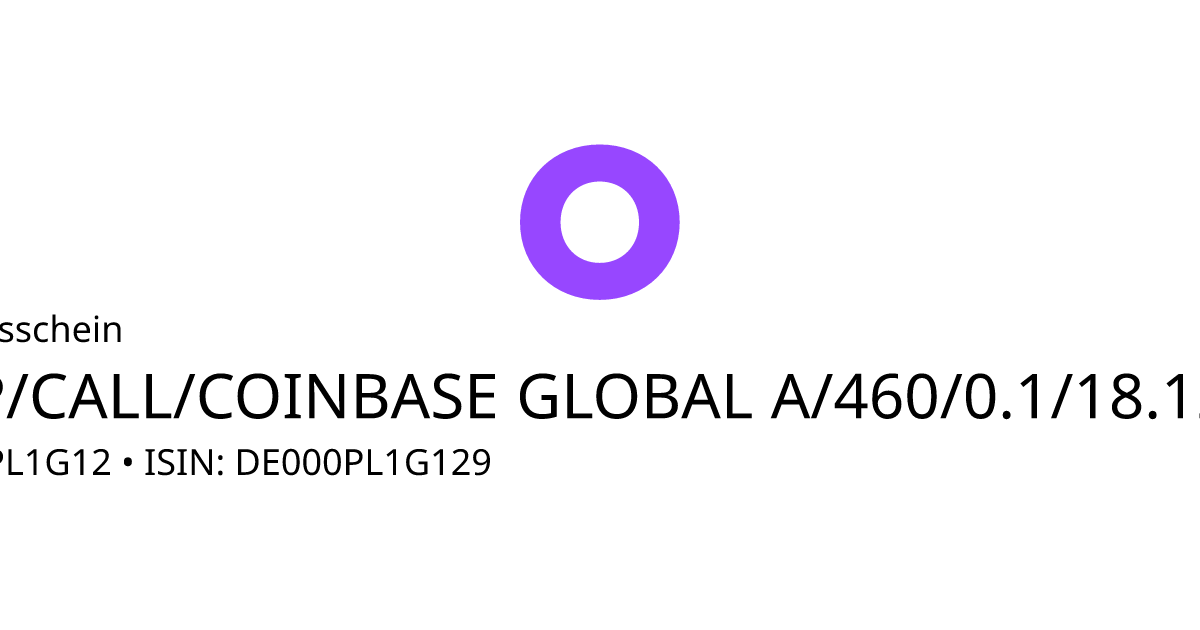 Dieser Optionsschein (Call) bezieht sich auf den Basiswert Coinbase Global Inc. und hat den Fälligkeitstag am 24.12.2026. Es handelt sich um ein Hebelprodukt, d.h. der Anleger partizipiert überproportional an der positiven und negativen Entwicklung des Basiswertes. Der Anleger hat während der Laufzeit ein Ausübungsrecht. Bei Ausübung berechnet sich die Rückzahlung durch die Differenz zwischen dem Kurs des Basiswertes und dem Basispreis bereinigt um das Bezugsverhältnis von 0,10. Am Ende der Laufzeit kommt es zu einer automatischen Ausübung. Liegt der Kurs des Basiswertes dann unterhalb des Basispreises, verfällt das Produkt wertlos.