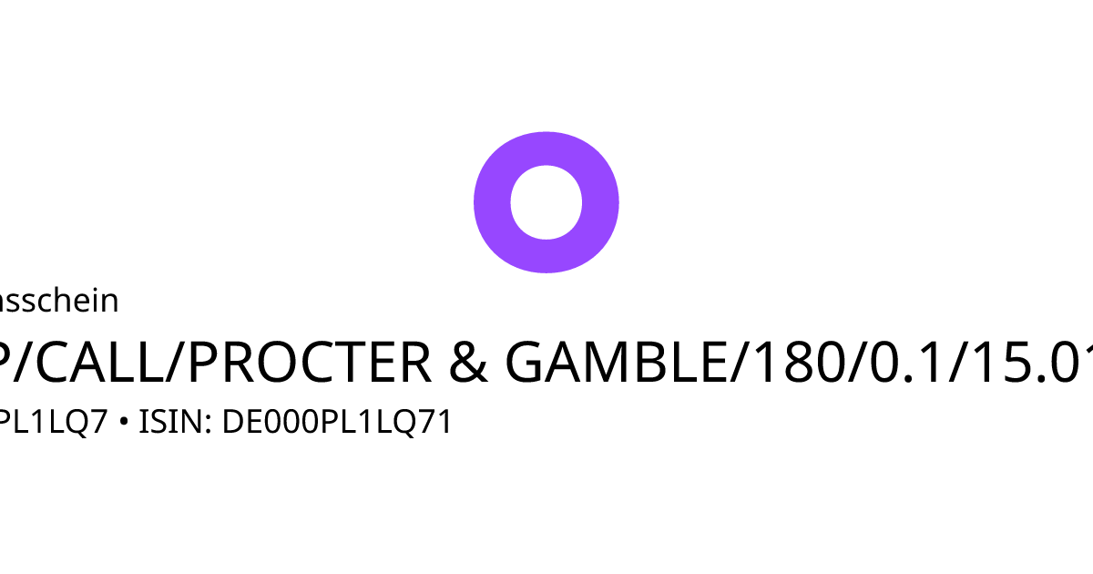 Dieser Optionsschein (Call) bezieht sich auf den Basiswert The Procter & Gamble Co. und hat den Fälligkeitstag am 21.01.2027. Es handelt sich um ein Hebelprodukt, d.h. der Anleger partizipiert überproportional an der positiven und negativen Entwicklung des Basiswertes. Der Anleger hat während der Laufzeit ein Ausübungsrecht. Bei Ausübung berechnet sich die Rückzahlung durch die Differenz zwischen dem Kurs des Basiswertes und dem Basispreis bereinigt um das Bezugsverhältnis von 0,10. Am Ende der Laufzeit kommt es zu einer automatischen Ausübung. Liegt der Kurs des Basiswertes dann unterhalb des Basispreises, verfällt das Produkt wertlos.