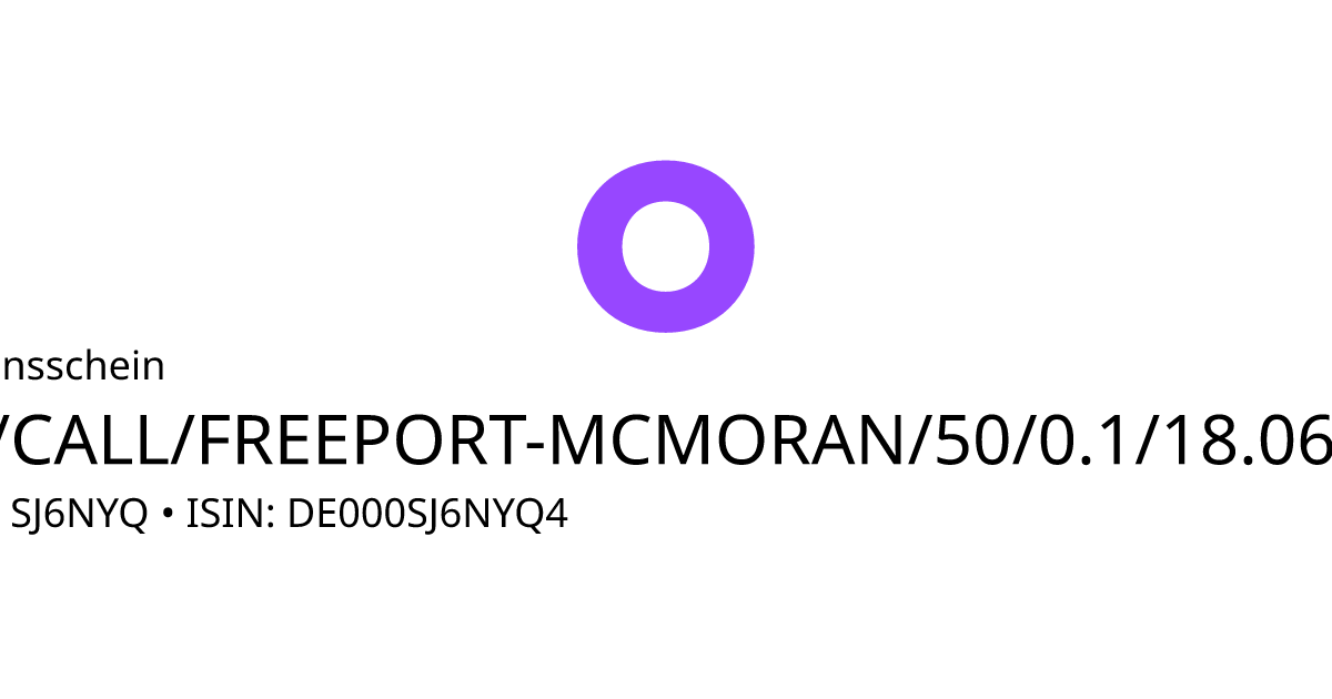 Dieser Optionsschein (Call) bezieht sich auf den Basiswert Freeport-McMoRan Inc. und hat den Fälligkeitstag am 25.06.2026. Es handelt sich um ein Hebelprodukt, d.h. der Anleger partizipiert überproportional an der positiven und negativen Entwicklung des Basiswertes. Der Anleger hat während der Laufzeit ein Ausübungsrecht. Bei Ausübung berechnet sich die Rückzahlung durch die Differenz zwischen dem Kurs des Basiswertes und dem Basispreis bereinigt um das Bezugsverhältnis von 0,10. Am Ende der Laufzeit kommt es zu einer automatischen Ausübung. Liegt der Kurs des Basiswertes dann unterhalb des Basispreises, verfällt das Produkt wertlos.